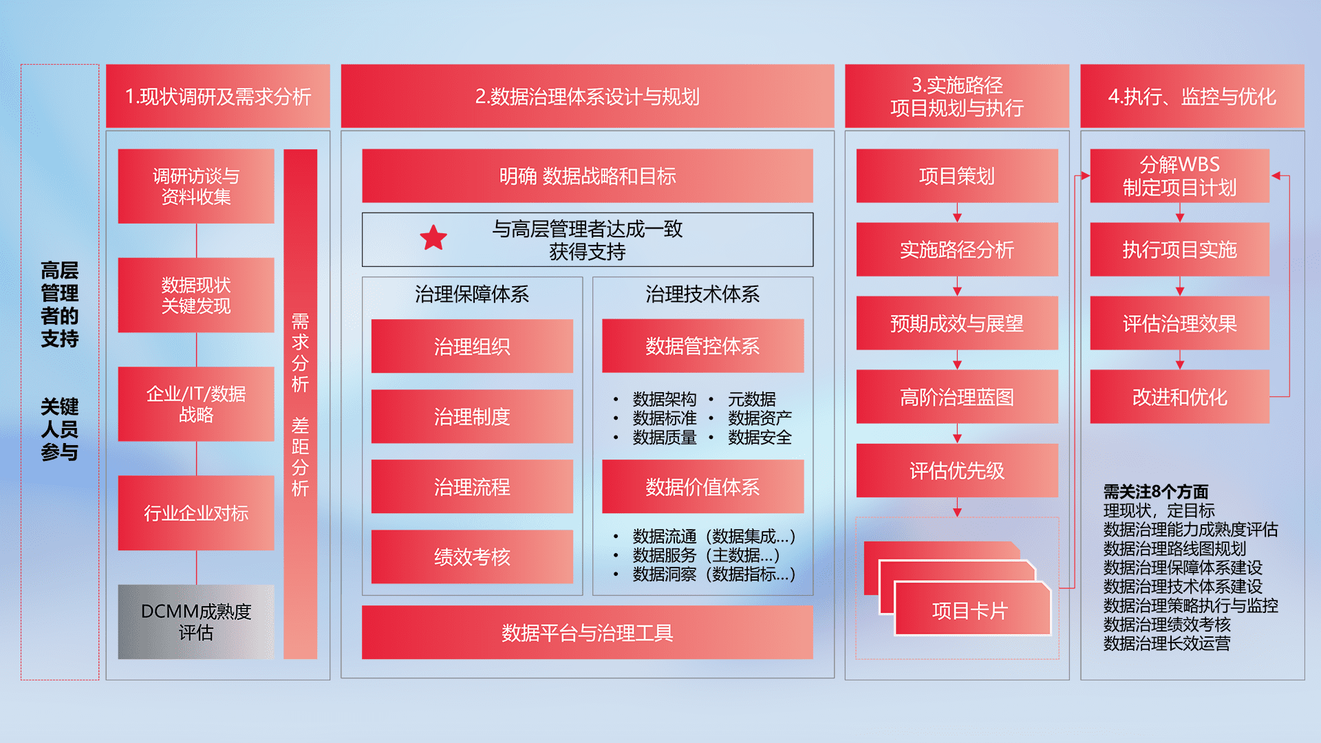 制定并执行统一的数据标准,,,规范数据定义和格式,,,消除冗余和不一致性,,实现跨部门和跨系统的数据一致性,,,,为企业提供标准化的数据基础。。。